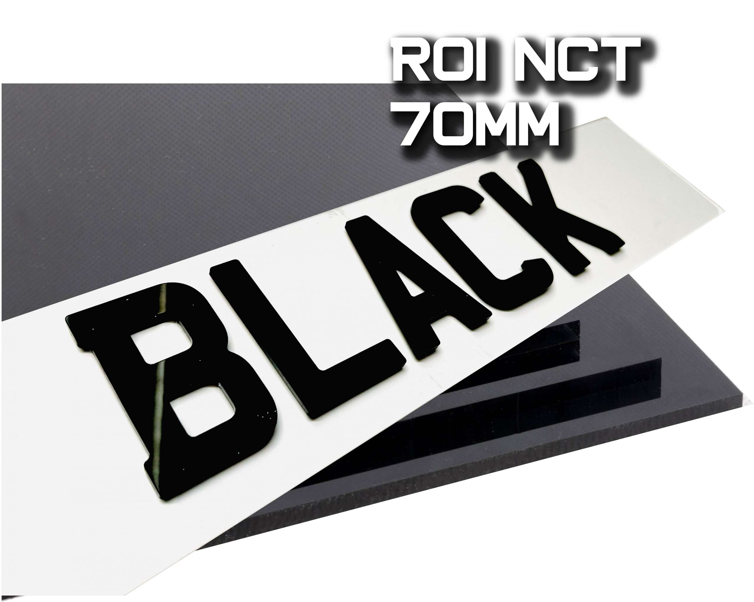 70mm 4D IRISH NCT Gloss Black Acrylic Number Plate Replacement Letters